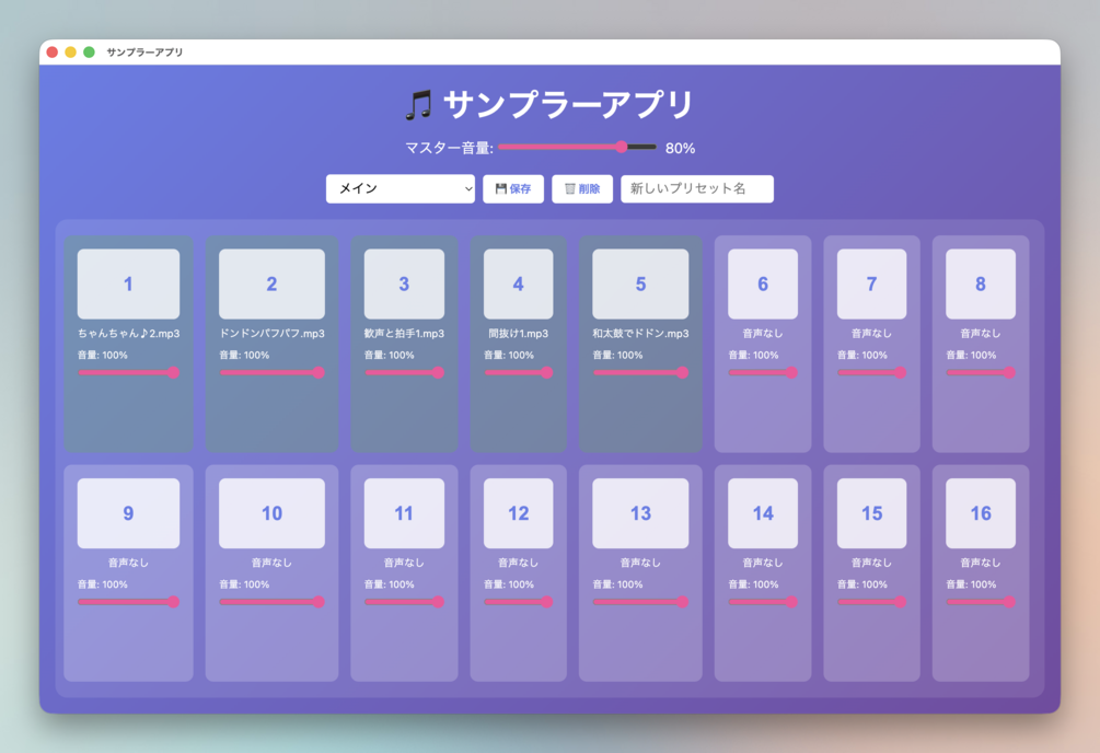 • パッドを右クリックまたはドラッグ&ドロップで音声読み込み